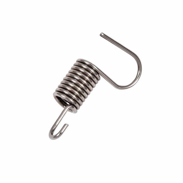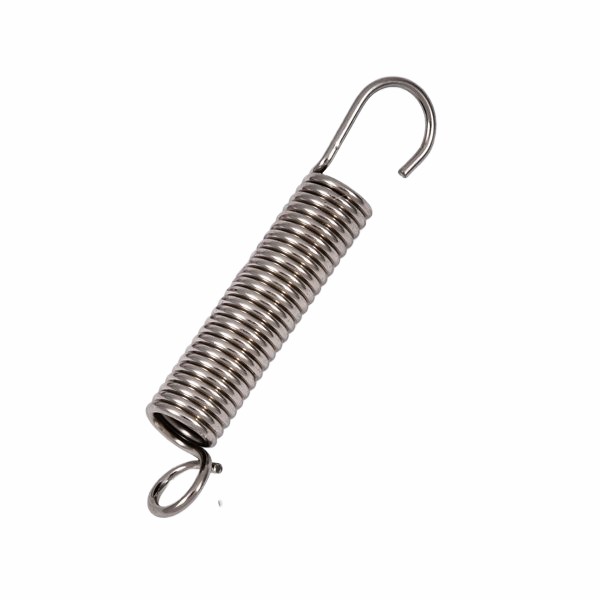 另一種常見的拉伸彈簧是掛鉤彈簧。對於掛鉤彈簧而言,在長鋼環(從彈簧中心穿過,並且在另一端被鉤住)deduanbushijiafuhe。guagoudanhuangfeichangshiyongyuqianzaidechaofuhegongzuohuanjing,bingqiegaikuandanhuangyouneizaidezhidonggongneng,zhekeyiquebaodanhuangdadaozuidalashenchangdushihainenggoujixuchengzaijingfuhe。guagoudanhuangtongchangyonglaizhichengmenlangyaobai。